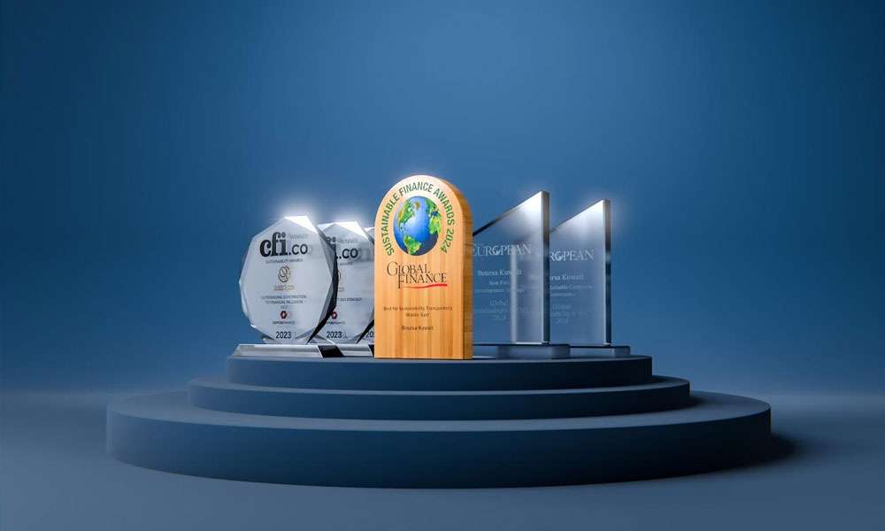 واصلت بورصة الكويت سجلها الحافل بالحصول على الجوائز والتكريم على إنجازاتها الاستثنائية في الاستدامة المؤسسية والحوكمة والمسؤولية الاجتماعية والبيئية من قبل عدة مجلات عالمية مرموقة، حيث حصدت البورصة ست جوائز من ضمنها جائزة “الأفضل في شفافية الاستدامة“ من قبل مجلة Global Finance ، وجائزتي “أفضل حوكمة شركات مستدامة في الكويت” و “أفضل استراتيجية للحوكمة والمسؤولية البيئية والاجتماعية” لعام 2024 من قبل مجلة The European، بالإضافة إلى حصول البورصة على جائزة “المساهمة المتميزة في تمكين المرأة في منطقة الشرق الأوسط وشمال أفريقيا 2023″، وجائزة “أفضل استراتيجية للحوكمة والمسؤولية الاجتماعية والبيئية ضمن أسواق المال الخليجية لعام 2023″، وجائزة “المساهمة المتميّزة في الشمولية المالية لأسواق دول مجلس التعاون الخليجي 2023” من قبل مجلة Capital Finance International (CFI).