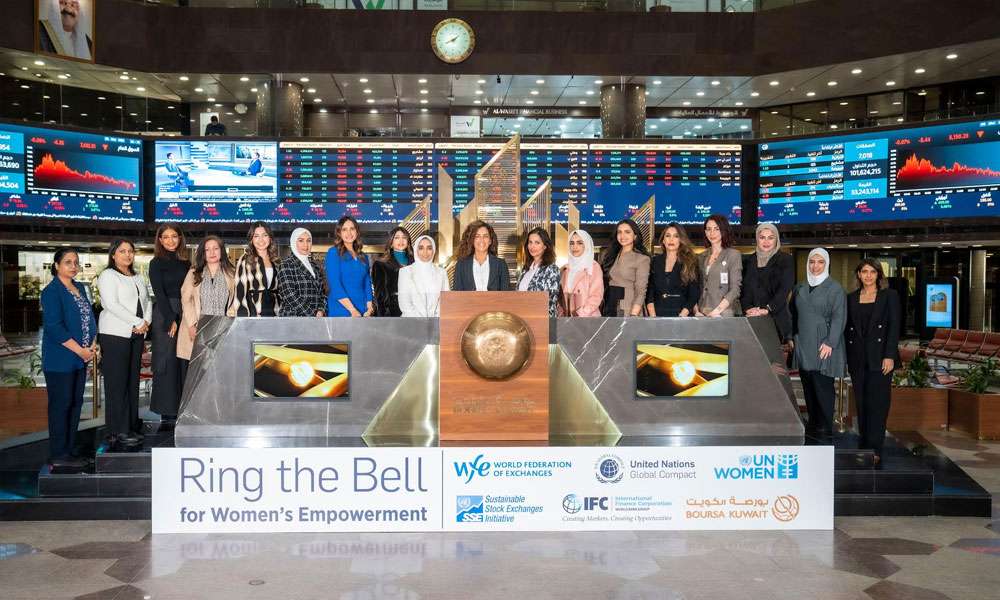 وفي العام 2024، انضمت بورصة الكويت إلى أكثر من 100 بورصة عالمية لقرع الجرس لتمكين المرأة للسنة السابعة على التوالي، احتفاءً باليوم العالمي للمرأة. تؤكد هذه المبادرة، التي تنظمها الهيئة العامة للأمم المتحدة للمرأة بالشراكة مع الاتحاد العالمي للبورصات حول العالم، على الدور الحاسم الذي يمكن أن تقوم به البورصات في تحقيق أهداف الأمم المتحدة للتنمية المستدامة. اقيم حفل هذا العام تحت عنوان “الاستثمار في المرأة: تسريع التقدم”، ويؤكد على تعزيز الانصات لأصوات النساء والاحتفاء بمساهماتهن، مما يمهد الطريق لمستقبل أكثر شمولاً وازدهاراً. كما تهدف المبادرة إلى رفع مستوى الوعي حول مبادئ تمكين المرأة، وهي مجموعة من سبعة مبادئ عالمية تقدم إرشادات عملية للشركات لتمكين المرأة في بيئة العمل وسوق العمل والمجتمع.