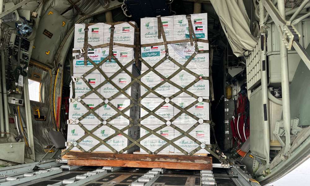 أقلعت اليوم الأربعاء الطائرة الإغاثية الـ24 من الجسر الجوي الكويتي متجهة إلى مطار دمشق الدولي وعلى متنها 10 أطنان من المواد الغذائية للفئات الأكثر احتياجا في سوريا ضمن حملة (الكويت بجانبكم) بتنظيم من جمعية السلام للأعمال الإنسانية والخيرية والتنسيق مع وزارات الشؤون الاجتماعية والخارجية والدفاع ممثلة بالقوة الجوية الكويتية.
