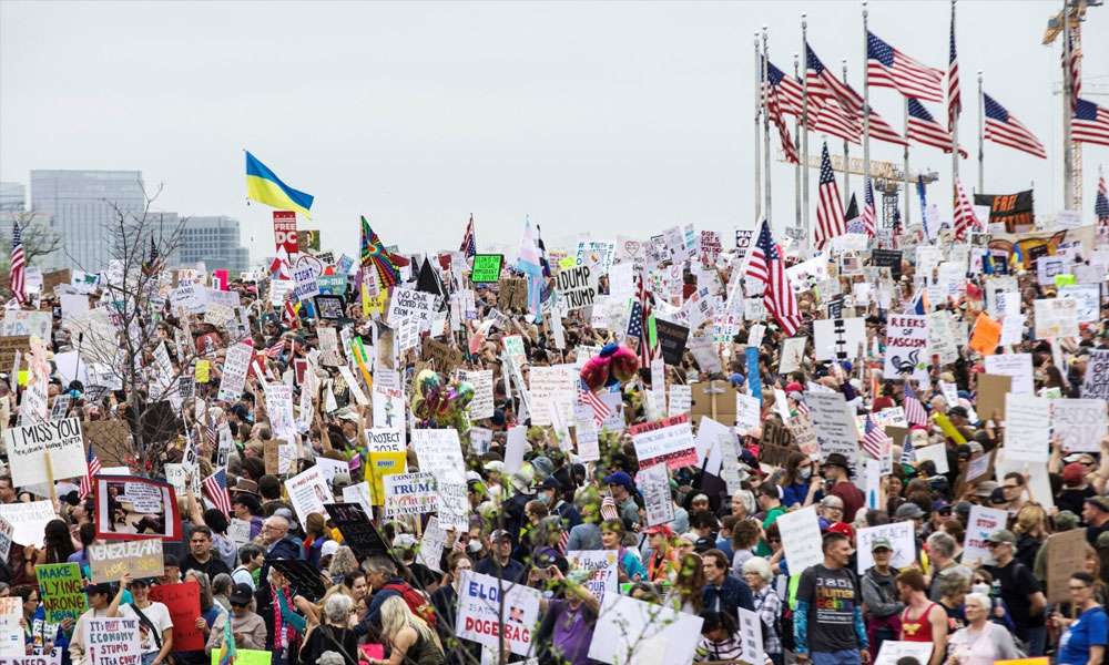 وتأتي التظاهرات في وقت يعاني فيه الاقتصاد من تداعيات الرسوم الجمركية الشاملة التي فرضها الرئيس ترامب على شركاء الولايات المتحدة التجاريين بعد أيام قليلة من التراجع الحاد لسوق الأسهم.
