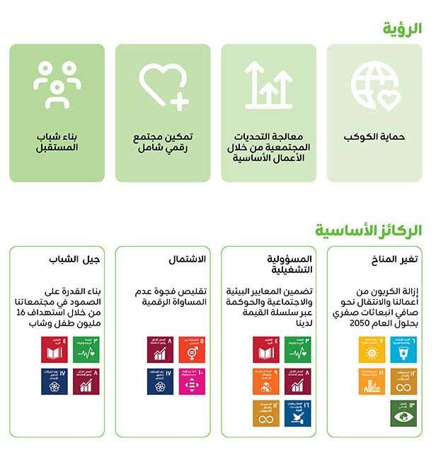 ويتناول التقرير برامج ومبادرات المجموعة التي قامت بتنفيذها ضمن استراتيجيتها الخمسية للاستدامة وهي: تغير المناخ، التشغيل المسؤول، الاشتمال، وجيل الشباب، فهي تؤكد على أهمية معالجة القضايا المتعلقة بالحفاظ على الكوكب وحمايته للأجيال القادمة، وإمكانية الوصول وتقليل الفجوة في محو الأمية الرقمية.