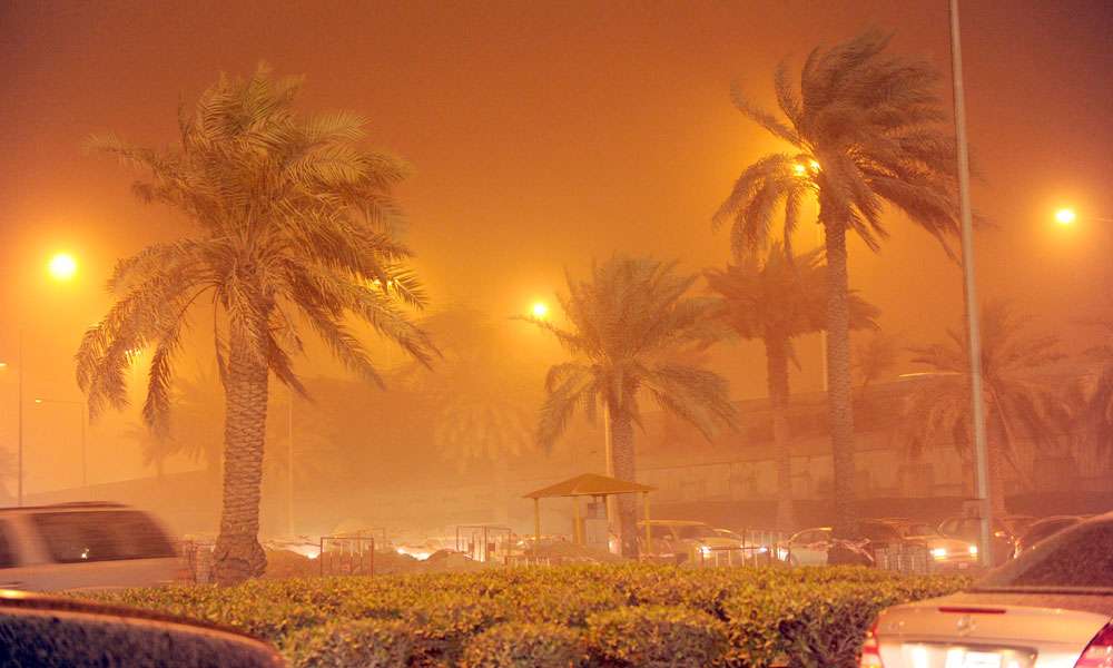 وأضاف العلي لوكالة الأنباء الكويتية (كونا) أن خرائط الطقس وصور الأقمار الاصطناعية تشير إلى نشاط في حركة الرياح الشمالية الغربية التي قد تزيد سرعتها على 60 كيلومترا في الساعة لتؤدي إلى انخفاض مستوى الرؤية الأفقية إلى أقل من ألف متر على بعض المناطق خاصة المكشوفة.