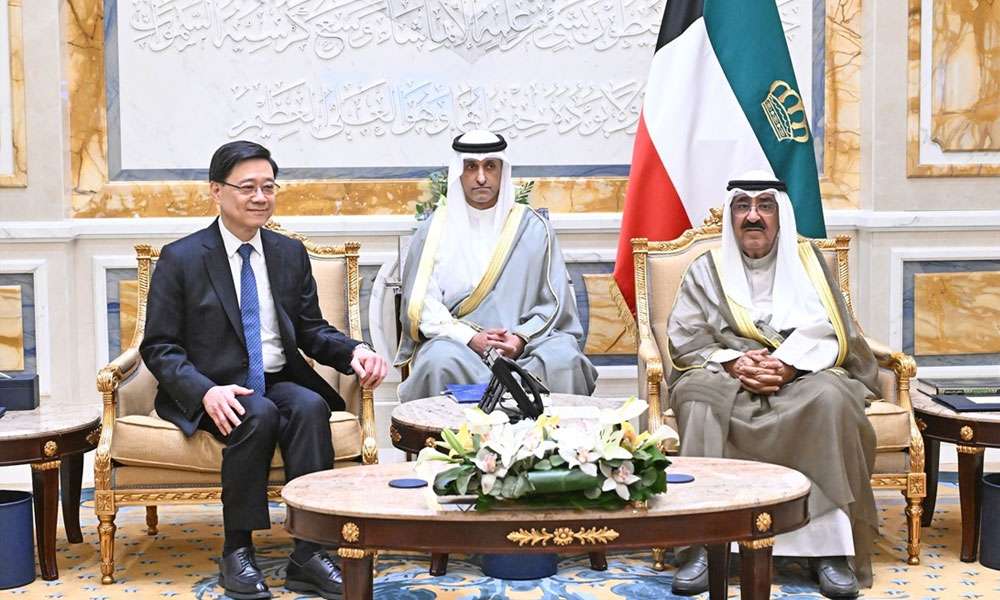 استقبل حضرة صاحب السمو أمير البلاد الشيخ مشعل الأحمد الجابر الصباح حفظه الله ورعاه بقصر بيان صباح اليوم وبحضور معالي رئيس مجلس الوزراء بالإنابة الشيخ فهد يوسف سعود الصباح استقبل سموه رعاه الله صاحب السعادة السيد جون لي كاتشيو رئيس منطقة هونغ كونغ الإدارية والوفد المرافق وذلك بمناسبة زيارته للبلاد.