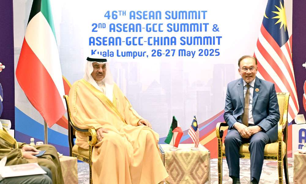 التقى ممثل حضرة صاحب السمو أمير البلاد الشيخ مشعل الأحمد الجابر الصباح حفظه الله ورعاه سمو ولي العهد الشيخ صباح خالد الحمد الصباح حفظه الله معالي داتو سيري أنور إبراهيم رئيس وزراء ماليزيا الصديقة على هامش القمتين الثانية لدول الآسيان ودول مجلس التعاون لدول الخليج العربية ودول الآسيان ودول مجلس التعاون لدول الخليج العربية وجمهورية الصين الشعبية في العاصمة كوالالمبور.