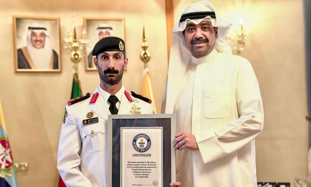أشاد وزير الدفاع الشيخ عبدالله علي عبدالله الصباح بالإنجاز العالمي الذي حققه العقيد الركن بحري مهندس يوسف الشطي ودخوله موسوعة (غينيس) للأرقام القياسية بعد تسجيله لقب (أسرع ماراثون في زي عسكري كامل) الذي أقيم في مدينة أفوري البرتغالية.