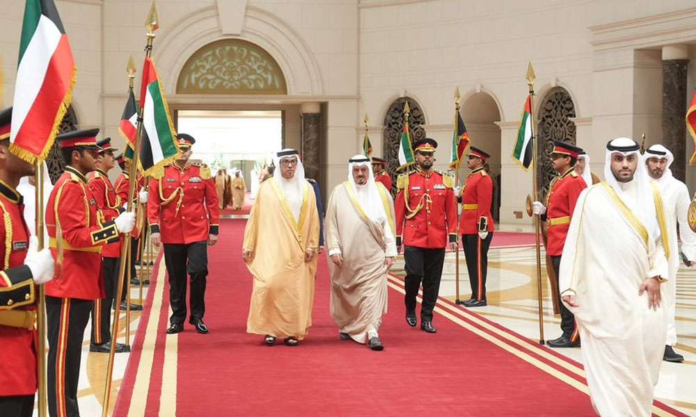 وكان في استقبال سموه على أرض المطار سمو الشيخ أحمد عبدالله الأحمد الصباح رئيس مجلس الوزراء ومعالي النائب الأول لرئيس مجلس الوزراء ووزير الداخلية الشيخ فهد يوسف سعود الصباح ومعالي وزير شؤون الديوان الأميري الشيخ محمد عبدالله المبارك الصباح ومعالي نائب رئيس مجلس الوزراء ووزير الدولة لشؤون مجلس الوزراء شريدة عبدالله المعوشرجي ومعالي وزير الخارجية عبدالله علي اليحيا.