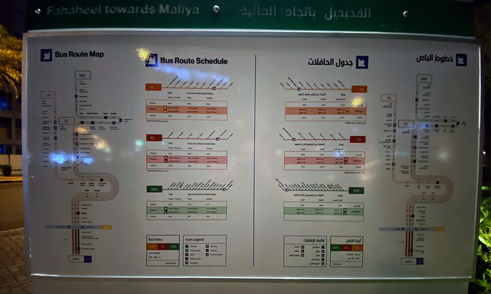 محطة انتظار الباص في شارع الشهداء تصبح أول محطة في الكويت تتمتع بخريطة للخطوط