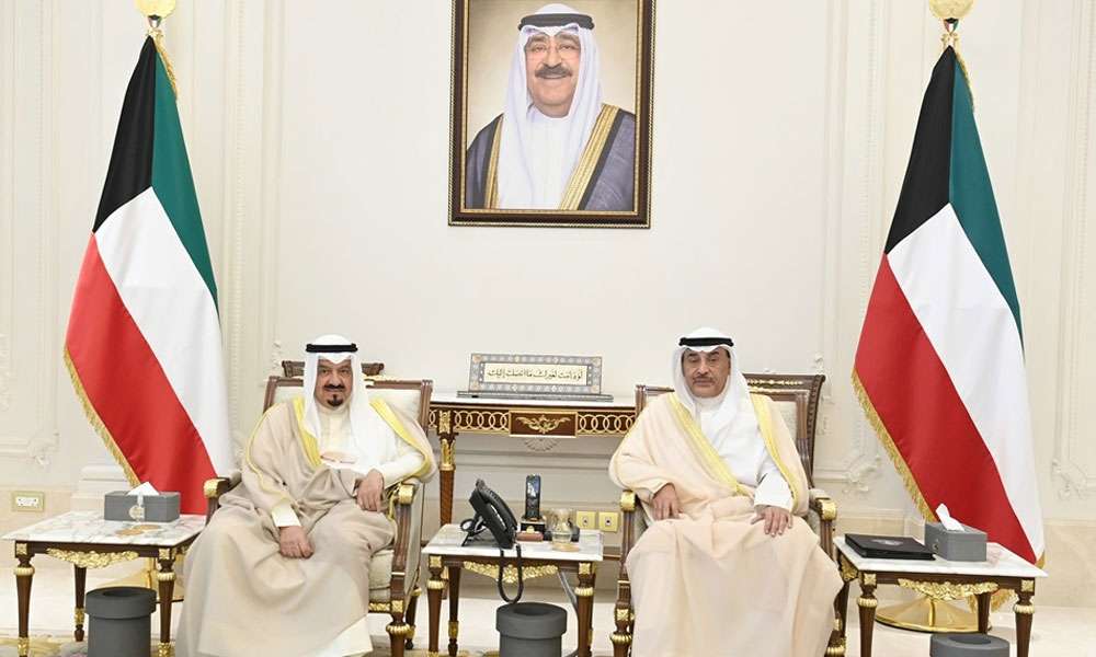 سمو ولي العهد الشيخ صباح خالد الحمد الصباح يستقبل سمو الشيخ أحمد عبدالله الأحمد الصباح رئيس مجلس الوزراء