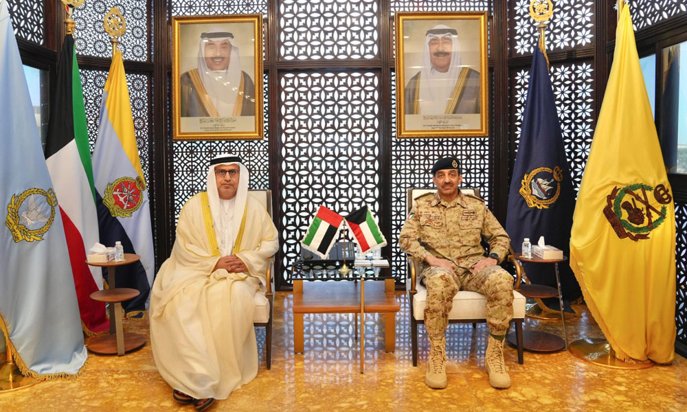 رئيس الأركان العامة للجيش الفريق الركن خالد الشريعان خلال استقباله سفير دولة الإمارات العربية المتحدة الشقيقة لدى الكويت الدكتور مطر النيادي