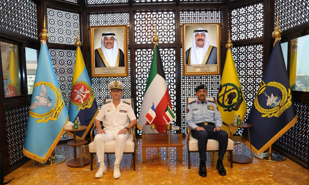 بحث رئيس الأركان العامة للجيش الفريق الركن خالد الشريعان مع قائد القوات الفرنسية في المحيط الهندي والقوات المتمركزة في دولة الإمارات العربية المتحدة الشقيقة العميد بحري هيوجس لين أهم المواضيع ذات الاهتمام المشترك لاسيما المتعلقة بالجوانب العسكرية.