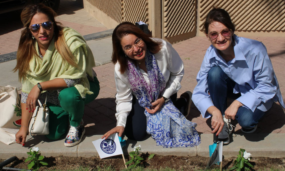 وكان أبرز ما في هذا اليوم حفل زراعة الزهور الذي أقيم بالقرب من المدخل الرئيسي، والذي تضمن شتلات البتونيا والفينكوروزا وإبرة الراعي. تعاونت السفيرات وزوجات السفراء وعضوات المجموعة بزراعة الشتلات النابضة بالحياة، مما أضاف لمسة لونية دائمة على المشهد. واحتفالاً بهذا اليوم، قُدّمت للحضور هدايا تذكارية جاهزة وشتلاتهم الخاصة لمواصلة جهود التشجير في منازلهم.