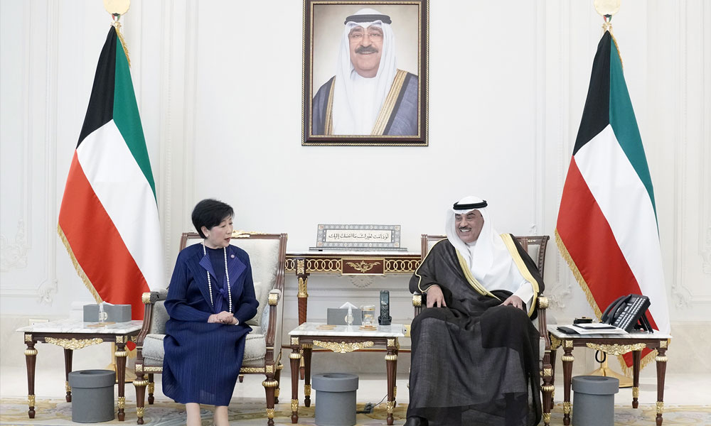 استقبل سمو ولي العهد الشيخ صباح خالد الحمد الصباح حفظه الله بقصر بيان صباح اليوم حاكمة طوكيو في اليابان الصديقة يوريكو كويكي والوفد المرافق وذلك بمناسبة زيارتها للبلاد.