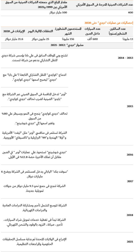 هي أكبر شركة نقل تشاركي فى الصين وهى التى أخرجت “أوبر” من السوق الصيني قبل خمس سنوات، واستحوذت علي عمليات الشركة الأمريكية بعد حرب حرق أسعار باهظة الثمن وتكسير عظام.