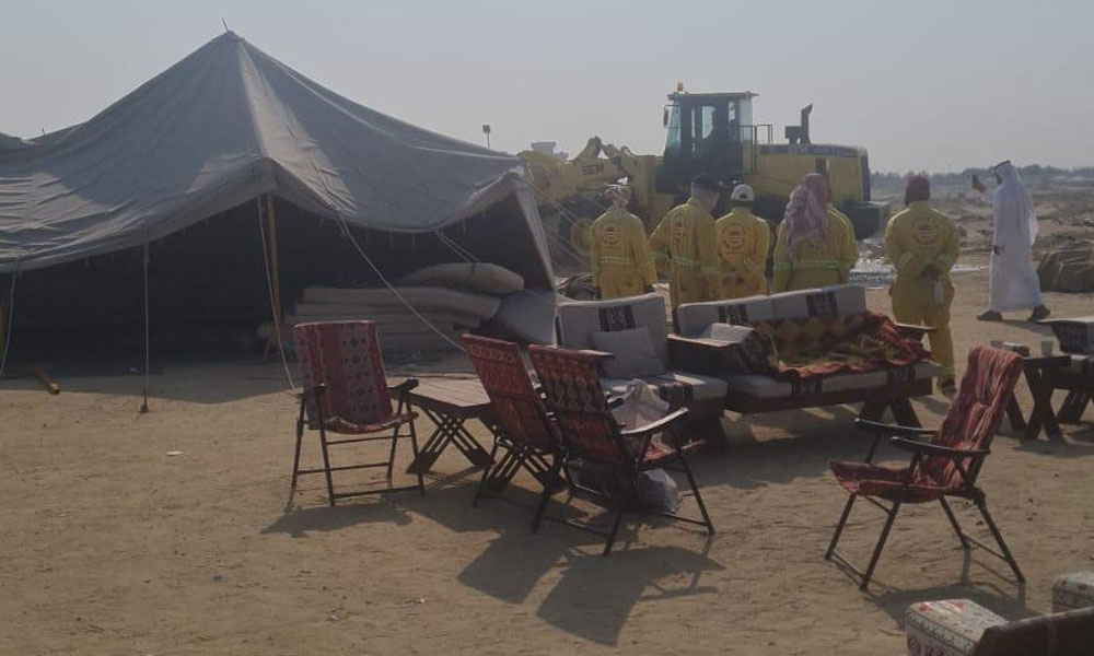 وذكرت البلدية في بيان صحفي أن الفرق الميدانية لإدارة النظافة وإشغالات الطرق تواصل حملاتها التفتيشية المكثفة لإزالة المخيمات المخالفة بتوجيهات من وزير الدولة لشؤون البلدية ووزير الدولة لشؤون الإسكان عبداللطيف المشاري.