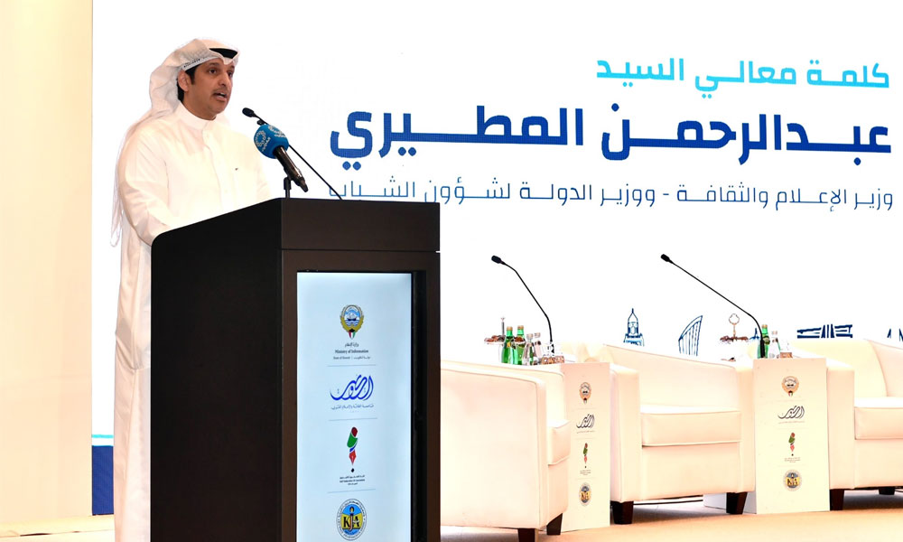 أكد وزير الإعلام والثقافة ووزير الدولة لشؤون الشباب عبدالرحمن المطيري أن الملتقى الرابع للصحفيات في دول مجلس التعاون لدول الخليج العربية الذي يجمع نخبة من الإعلاميين والصحفيين يجسد وحدة الكلمة ومسؤولية الرسالة ودور الإعلام في بناء الإنسان وصناعة الوعي وتعزيز الانتماء.