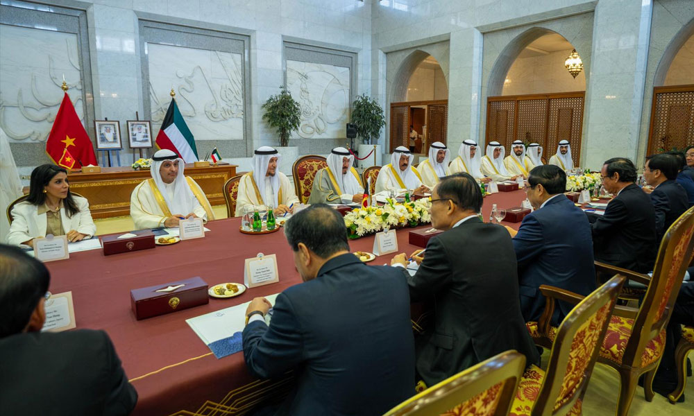 عقد سمو الشيخ أحمد عبدالله الأحمد الصباح رئيس مجلس الوزراء في قصر بيان اليوم جلسة مباحثات رسمية مع معالي رئيس وزراء جمهورية فيتنام الاشتراكية الصديقة فام مينه تشينه والوفد المرافق له.