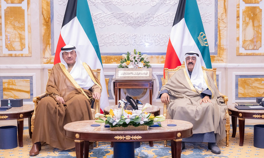 حضرة صاحب السمو أمير البلاد الشيخ مشعل الأحمد الجابر الصباح يستقبل سمو ولي العهد الشيخ صباح خالد الحمد الصباح