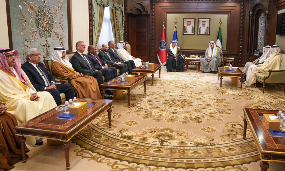استقبل معالي رئيس مجلس الوزراء بالإنابة ووزير الداخلية الشيخ فهد يوسف سعود الصباح في قصر بيان اليوم أصحاب المعالي والسعادة وزراء وممثلي وزارات النفط والطاقة في الدول الأعضاء بالمنظمة العربية للطاقة وسعادة الأمين العام للمنظمة جمال عيسى اللوغاني بمناسبة انعقاد أعمال الاجتماع الوزاري 115 للمنظمة الذي تستضيفه دولة الكويت وذلك بحضور وزير النفط رئيس الدورة الحالية لمجلس وزراء المنظمة طارق سليمان الرومي.