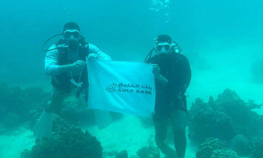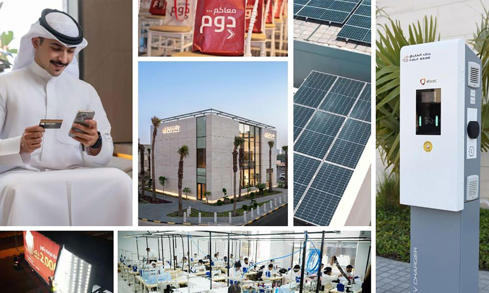 أطلق بنك الخليج سلسلة من المبادرات النوعية الهادفة إلى ترسيخ مفاهيم الاستدامة البيئية وتعزيز الممارسات المسؤولة داخل المجتمع، بما ينسجم مع أهداف التنمية المستدامة للأمم المتحدة (SDGs)، حيث أطلق مبادرة إعادة تدوير الإعلانات التجارية في الشوارع وتحويلها إلى حقائب قابلة لإعادة الاستخدام، بالتعاون مع مصنع «إبره»، أحد المشروعات الصغيرة والمتوسطة التي تعتمد على تشغيل أفراد من الأسر المتعففة، في نموذج يجمع بين الأثر البيئي والبعد الاجتماعي ودعم الاقتصاد المحلي. كما واصل البنك حضوره الفاعل في القضايا البيئية من خلال تنظيم والمشاركة في عدد من الحملات الميدانية، من بينها حملة تنظيف بر المطلاع، وحملة تنظيف مياه وشواطئ جزيرة قاروه، دعمًا لأهداف حماية الحياة البرية والحياة تحت الماء.