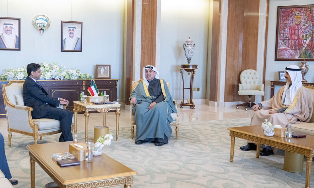 استقبل معالي وزير شؤون الديوان الأميري الشيخ حمد جابر العلي الصباح ومعالي رئيس ديوان سمو ولي العهد الشيخ ثامر جابر الأحمد الصباح بقصر بيان صباح اليوم سعادة سفير المملكة المتحدة لبريطانيا العظمى وأيرلندا الشمالية الصديقة لدى دولة الكويت قدسي رشيد.