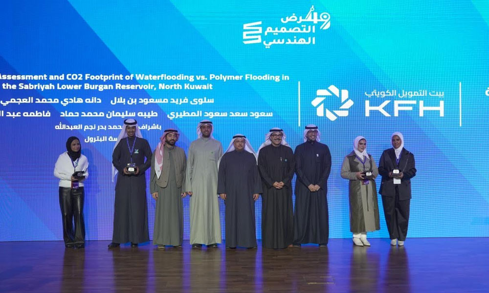 توج بيت التمويل الكويتي الفائزين بجائزة “بيت التمويل الكويتي للاستدامة البيئية” خلال حفل تكريم مشاريع طلبة كلية الهندسة والبترول بجامعة الكويت، ضمن ختام معرض التصميم الهندسي الـ49 الذي أقيم تحت رعاية معالي وزير الكهرباء والماء والطاقة المتجددة ووزير المالية ووزير الدولة للشؤون الاقتصادية والاستثمار بالوكالة، الدكتور صبيح عبدالعزيز المخيزيم.