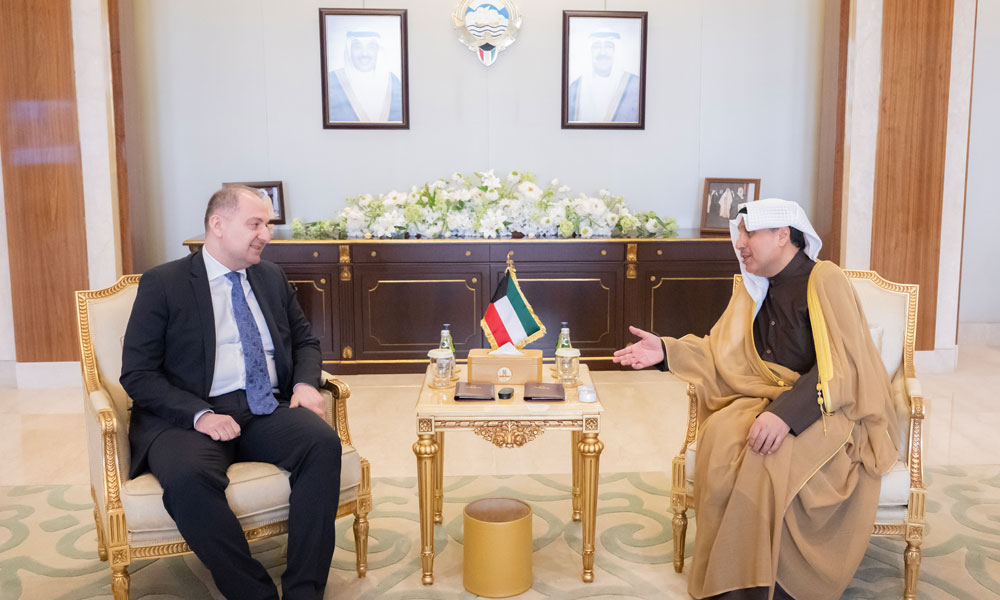 استقبل معالي وزير شؤون الديوان الأميري الشيخ حمد جابر العلي الصباح بقصر بيان صباح اليوم سعادة سفير جمهورية جورجيا الصديقة لدى دولة الكويت نوشريفان لومتاتيدزة.