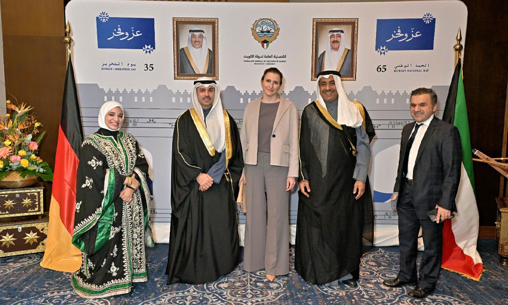 وفي ألمانيا نظمت القنصلية العامة لدولة الكويت في مدينة (فرانكفورت) حفلا رفع فيه القنصل العام لدولة الكويت عادل الغنيمان كلمة رفع فيه أسمى آيات التهاني والتبريكات لمقام حضرة صاحب السمو أمير البلاد الشيخ مشعل الأحمد الجابر الصباح حفظه الله ورعاه وسمو ولي العهد الشيخ صباح خالد الحمد الصباح حفظه الله وللحكومة والشعب الكويتي الكريم بهذه المناسبة الغالية.