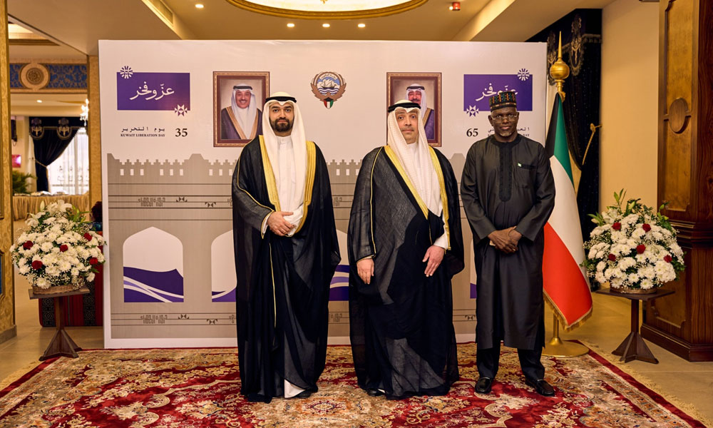 وفي نيجيريا أقام سفير دولة الكويت لدى نيجيريا سالم المزين حفل استقبال حيث تقدم بأسمى آيات التهاني والتبريكات مقام حضرة صاحب السمو أمير البلاد الشيخ مشعل الأحمد الجابر الصباح وسمو ولي العهد الشيخ صباح خالد الحمد الصباح حفظهما الله ورعاهما وحكومة وشعب دولة الكويت معربا عن أطيب أمنياته لدولة الكويت بمزيد من التقدم والرقى والازدهار.