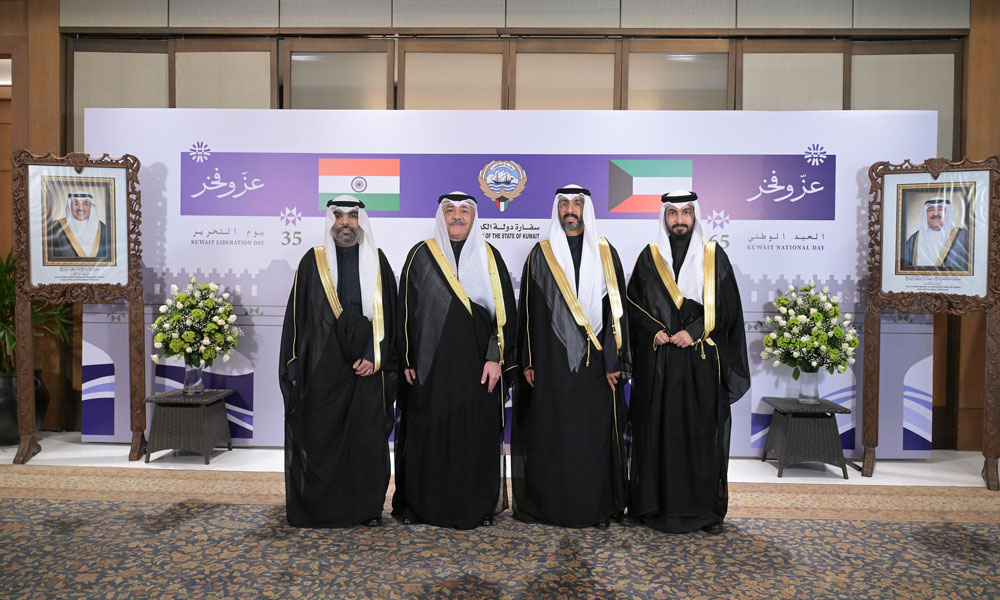اقامت سفارة دولة الكويت لدى الهند احتفالا بمناسبة الذكرى ال65 للعيد الوطني والذكرى ال35 ليوم التحرير بحضور عدد من الوزراء والمسؤولين ورؤساء البعثات الدبلوماسية والإعلاميين وممثلي المجتمع المدني.