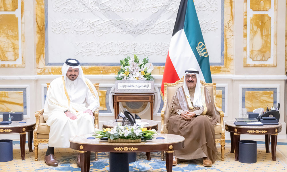 حيث نقل لسموه رعاه الله تحيات وتقدير أخيه حضرة صاحب السمو الشيخ تميم بن حمد آل ثاني أمير دولة قطر الشقيقة وتمنياته لسموه حفظه الله بموفور الصحة وتمام العافية ولشعب دولة الكويت المزيد من التطور والازدهار.