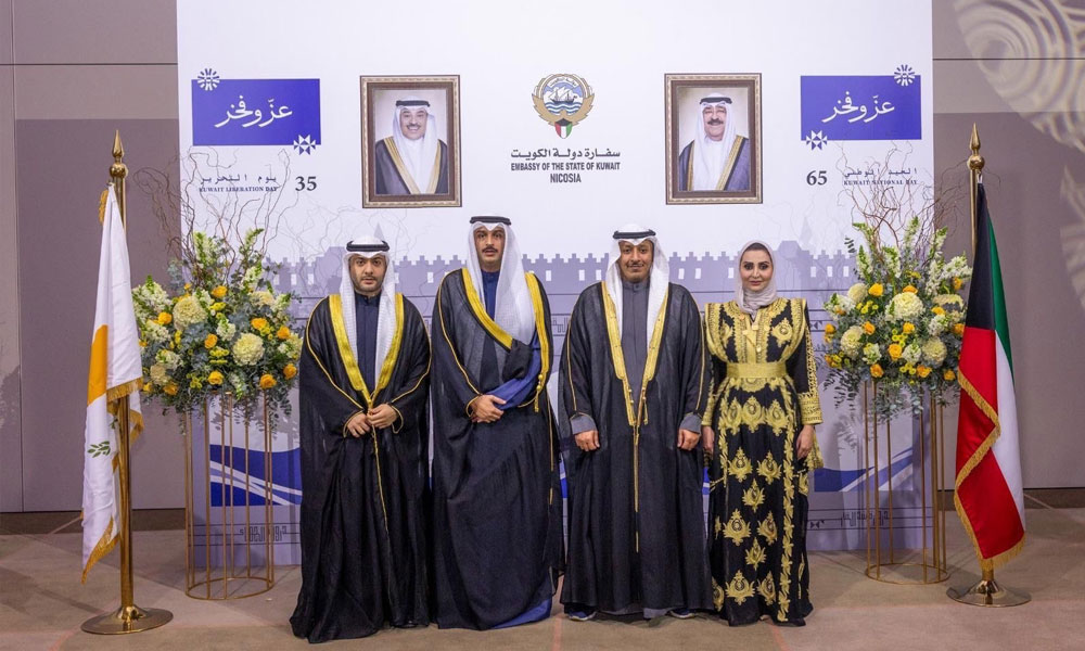 ومن جانبها أقامت سفارة دولة الكويت لدى جمهورية قبرص حفل استقبال في العاصمة نيقوسيا بمناسبة العيد الوطني الـ65 ويوم التحرير الـ35 بحضور رسمي ودبلوماسي واسع.