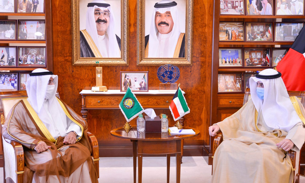 استقبل وزير الخارجية ووزير الدولة لشؤون مجلس الوزراء الشيخ الدكتور أحمد ناصر المحمد الصباح صباح اليوم الأربعاء الأمين العام لمجلس التعاون لدول الخليج العربية الدكتور نايف الحجرف بمناسبة زيارته الرسمية للبلاد.