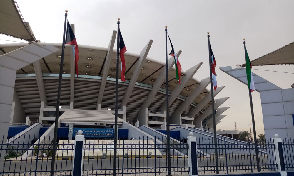 كما نفذت مراقبة اعمال الزينة ورفع الاعلام التابعة لإدارة العلاقات العامة عملية تزيين الإستاد بأعلام الدولة على الساريات خارج وداخل الاستاد.