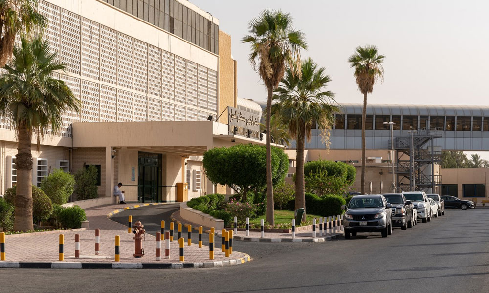 وتمتد المساحة الكلية لمباني المستشفى الواقع على بعد 10 كيلومترات عن الكويت العاصمة 265 ألف متر مربع في حين تبلغ مساحة الأرض الكلية التي يشغلها بما فيها الحدائق والطرق ومواقف السيارات نحو 400 دونم.