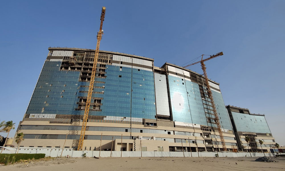 وأشارت الى ان المستشفى الذي يتكون من سرداب وأرضي و12 دورا يضم أجنحة المرضى وكافة الأقسام اللازمة لتقديم خدمات الرعاية الصحية بالإضافة الى مبنى الخدمات المركزي ومبنى مواقف السيارات لسعة 1257 موقف.