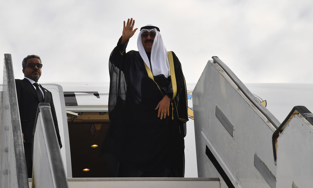 بحفظ الله ورعايته غادر ممثل حضرة صاحب السمو أمير البلاد الشيخ نواف الأحمد الجابر الصباح حفظه الله ورعاه سمو ولي العهد الشيخ مشعل الأحمد الجابر الصباح حفظه الله والوفد الرسمي المرافق لسموه عصر اليوم المملكة المتحدة وذلك بعد تقديم سموه حفظه الله واجب العزاء بوفاة صاحبة الجلالة الملكة إليزابيث الثانية ملكة المملكة المتحدة لبريطانيا العظمى وإيرلندا الشمالية الصديقة.
