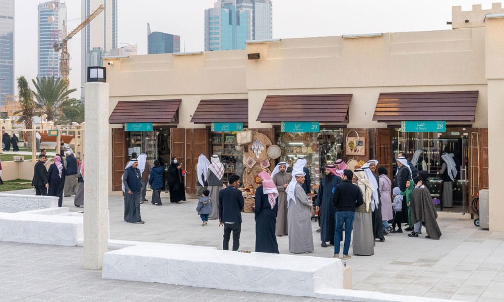 وفتحت القرية أبوابها لمرتاديها وسط حضور كبير من الزوار متنقلين بين مرافقها الجديدة التي تميزت بطراز معماري كويتي قديم يحكي قصة مكان وزمان لابناء هذا الجيل والاجيال القادمة.