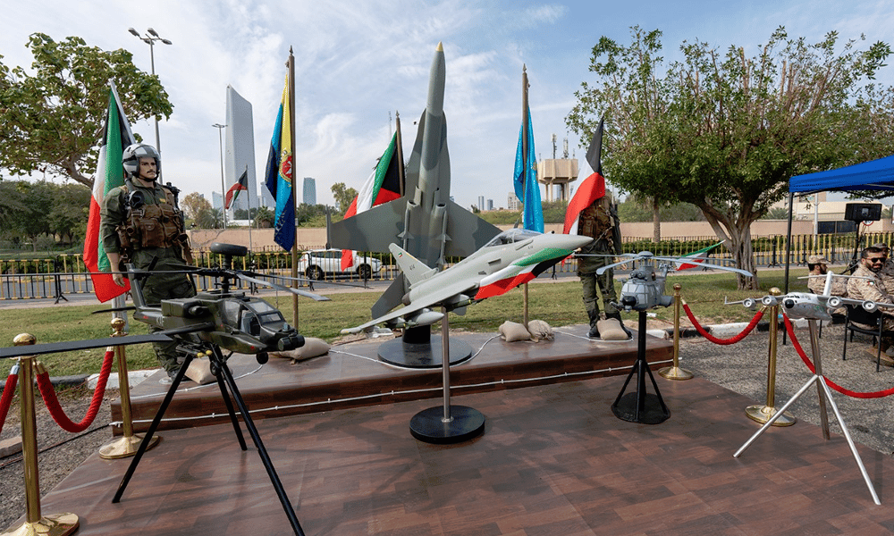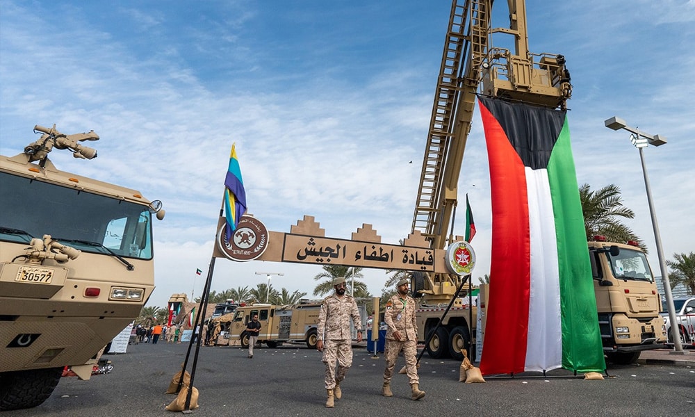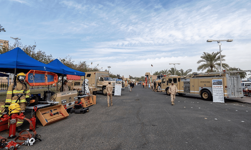 بقطع ومعدات عسكرية تحمل معاني قيمه وشموخه وجريا على عادته السنوية في المشاركة باحتفالات الكويت باعيادها الوطنية اقام الجيش الكويتي معرضا قرب ابراج الكويت بهذه المناسبات السعيدة.