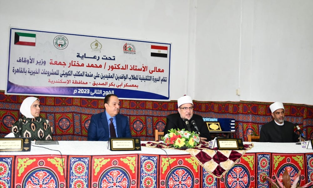 جاء ذلك في كلمة للوزير جمعة في ختام فعاليات الدورة التثقيفية الثانية بمعسكر (أبي بكر الصديق) بمحافظة الإسكندرية للطلاب الوافدين المقيدين على منحة المكتب الكويتي للمشروعات الخيرية بالقاهرة وذلك بالتعاون مع وزارة الأوقاف المصرية.