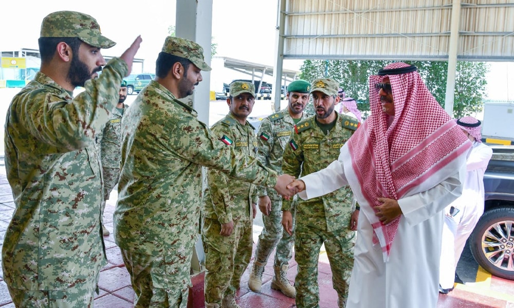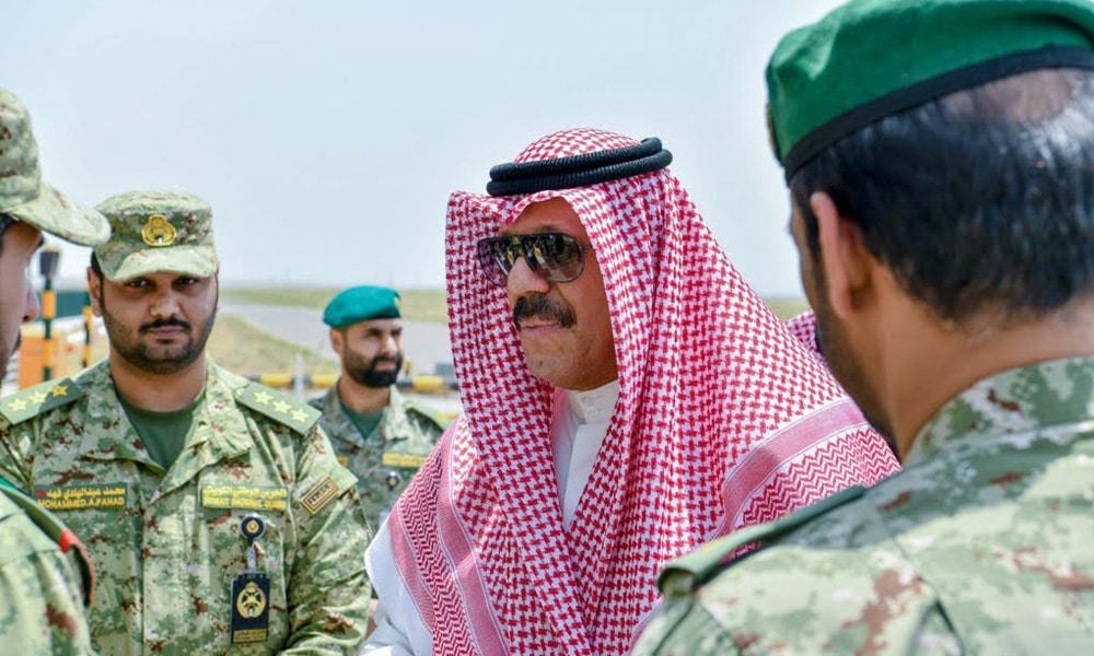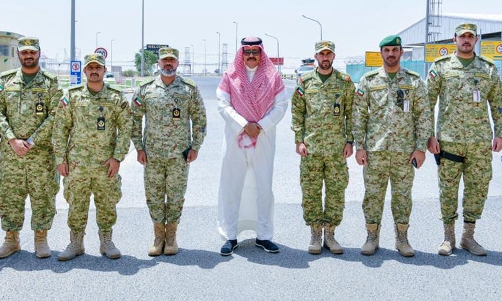 تفقد الشيخ فيصل نواف الأحمد الصباح نائب رئيس الحرس الوطني كتيبة حماية المنشآت الخامسة من لواء الحماية التي تتولى حماية وتأمين المنطقة النفطية الوسطى.