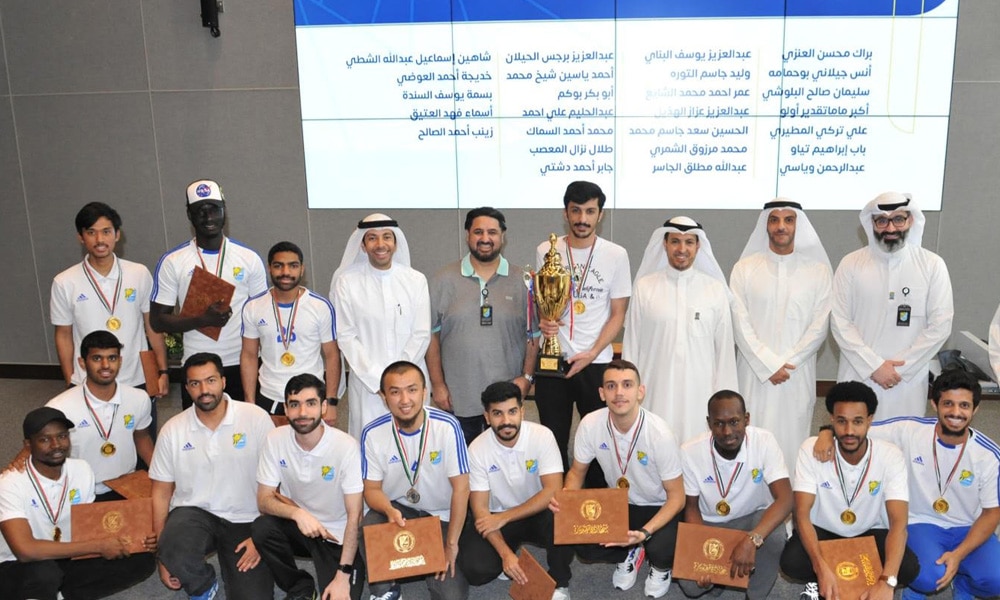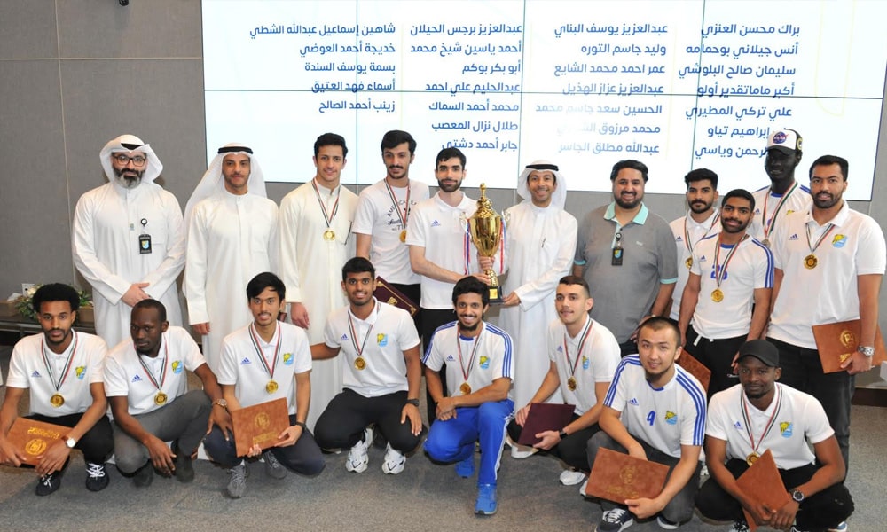 كما تم تكريم فريق كرة قدم جامعة الكويت الفائز بالمركز الأول (كرة قدم عشبي) ومدرب الفريق وتقديم كأس ودروع تذكارية لجميع الفائزين.
