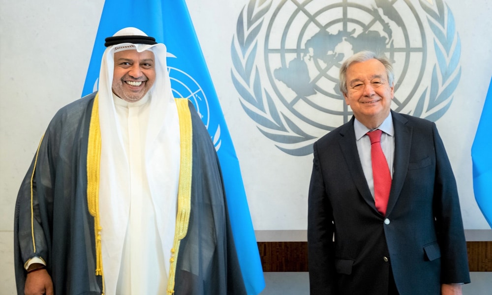 وجدد تأكيد التزام دولة الكويت بمواصلة جهودها الوطنية نحو تنفيذ أهداف التنمية المستدامة 2030 معربا عن حرص دولة الكويت على تعزيز وتعميق هذا التعاون مع الأمم المتحدة في المستقبل والبناء على ما تم تحقيقه من انجازات في إطار الشراكة الكويتية – الأممية خلال الستة عقود الماضية.