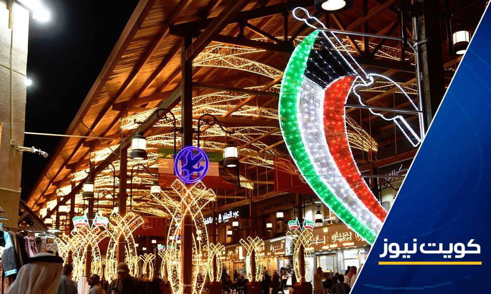 احتفالا بالأعياد الوطنية تزين سوق المباركية بأعلام الكويت وتصميمات بالأضواء والألوان للعلم وأبرز معالم البلاد لتعكس طابعا وطنيا تراثيا أخاذا.