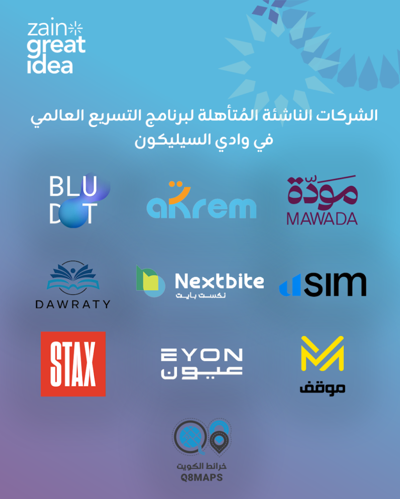 تُعلن زين عن أسماء 10 شركات كويتية تكنولوجية ناشئة تم اختيارها من قبل لجنة التحكيم لخوض المرحلة القادمة من برنامجها الرائد لتسريع الشركات التكنولوجية الناشئة Zain Great Idea، وهي مرحلة التسريع العالمي في مدينة بالو ألتو بولاية كاليفورنيا الأمريكية، وتحديداً في وادي السيليكون – العاصمة الروحية لريادة الأعمال حول العالم.