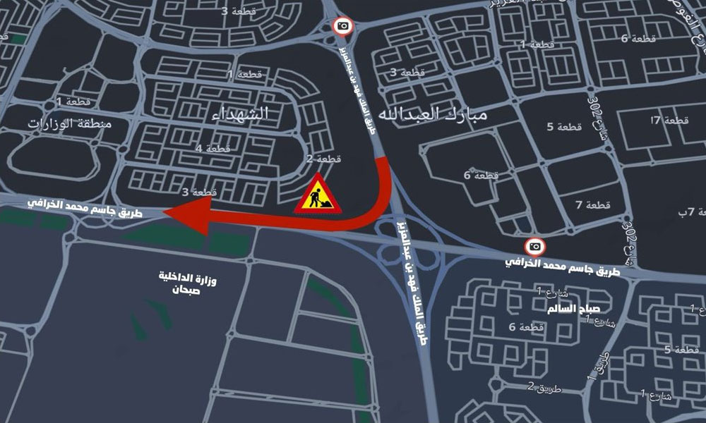 وأوضحت (المرور) في بيان صحفي أن الطريق الفرعي الذي سيتم إغلاقه هو للقادم من مدينة الكويت على (طريق الملك فهد) والمؤدي لطريق جاسم الخرافي (الدائري السادس) باتجاه مدينة الجهراء فقط.