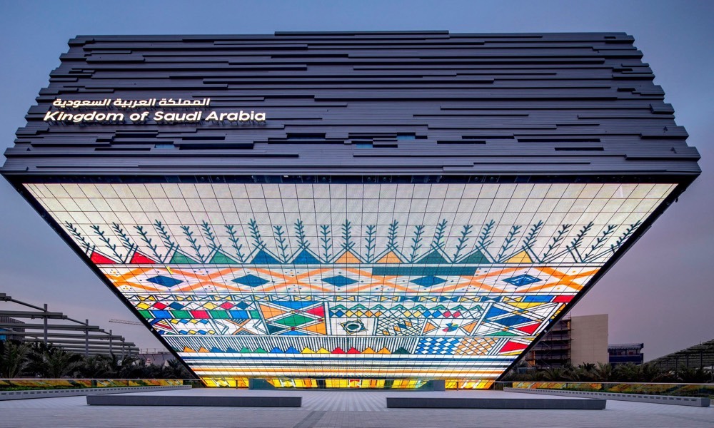 ومن المقرر أن ينطلق معرض “إكسبو 2020 دبي” في شهر أكتوبر من العام الجاري 2021م، ويستمر حتى شهر مارس من العام المقبل 2022م، وذلك تحت عنوان “تواصل العقول.. وصنع المستقبل”، وبمشاركة أكثر من 190 دولة. وستقدم فيه المملكة جناحاً مميزاً داخل مبنى ذي تصميم معماري فريد يجعله منارةًومعلماً بارزاً وسط منطقة المعرض، بمساحة كبيرة تبلغ 13 ألف متر مربع، وبشكل هندسي مبتكر يرتفع عن الأرض باتجاه السماء، ليُجسّد طموحات المملكة وتطلّعها نحو مستقبلٍ مزدهرٍ تستند فيه على هويتها الراسخة وتراثها العريق. وجاء تصميم المبنى متسقاً مع أعلى معايير الاستدامة البيئية، وحصل على الشهادة البلاتينية في نظام الريادة في تصميمات الطاقة والبيئة LEED من مجلس المباني الخضراء الأمريكي (USGBC) مما يجعله واحداً من أكثر التصاميم استدامة في العالم.