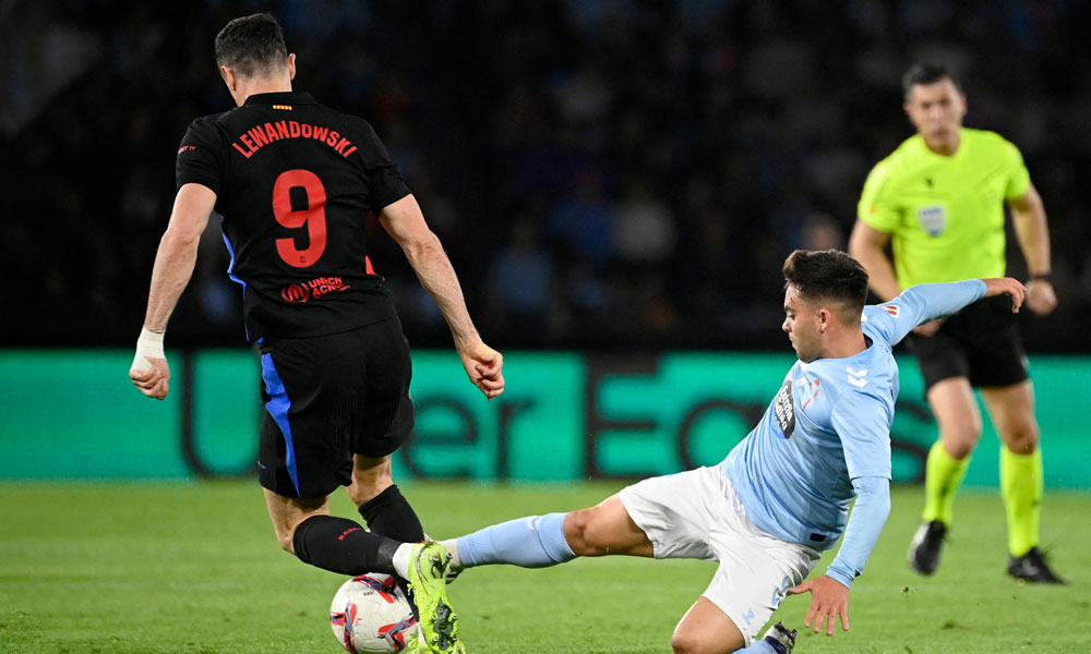 وواصل سلتا فيغو ضغطه دون خطورة على مرمى بينيا، فيما استغل ليفاندوفسكي كرة من رافينيا عند حافة المنطقة فتوغل وتابعها على يسار غوايتا مسجلا هدفه الخامس عشر هذا الموسم ومعززا صدارة لائحة الهدافين.