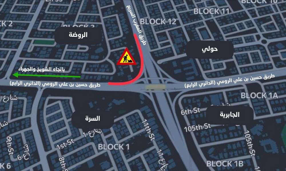 وقالت الإدارة العامة للعلاقات والإعلام الأمني بالوزارة في بيان صحفي إن المرحلة الأولى التي سيتم إغلاقها اليوم تشمل إغلاق المخرج الفرعي جهة منطقة الروضة من شارع المغرب للقادم من مدينة الكويت باتجاه الأحمدي المؤدي إلى الدائري الرابع باتجاه الجهراء.