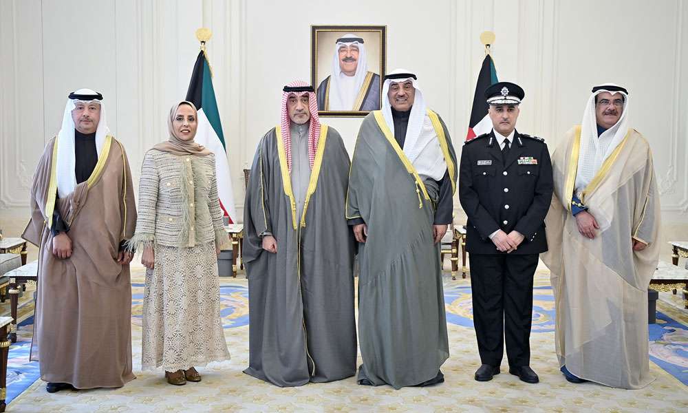 استقبل سمو ولي العهد الشيخ صباح خالد الحمد الصباح حفظه الله بقصر بيان صباح اليوم معالي النائب الأول لرئيس مجلس الوزراء ووزير الدفاع ووزير الداخلية الشيخ فهد يوسف سعود الصباح ومدير عام الإدارة العامة للتحقيقات اللواء حقوقي الدكتور فيصل خالد المكراد حيث قدما لسموه حفظه الله المدعي العام سعد محمد المطيري والمدعي العام ريم براك الموسى والمدعي العام بسام محمد المشوح وذلك بمناسبة تعيينهم نوابا لمدير عام الإدارة العامة للتحقيقات.