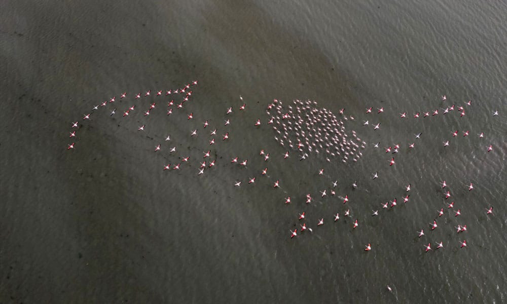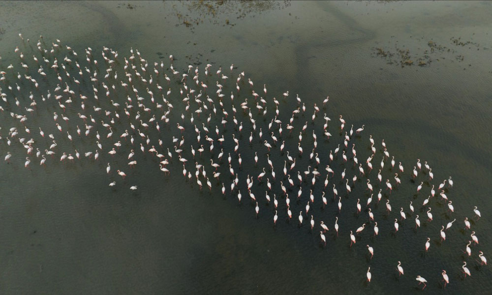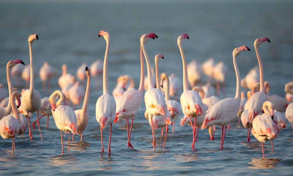تهادت أسراب كبيرة من طيور النحام الكبير (الفلامينغو) على شواطئ الكويت لتشكل لوحة طبيعية تشع جمالا وهي تستمتع بالأجواء الدافئة التي تتميز بها الكويت هذه الأيام وتناسب إحدى مراحل رحلة الهجرة السنوية لتلك الطيور الخلابة.